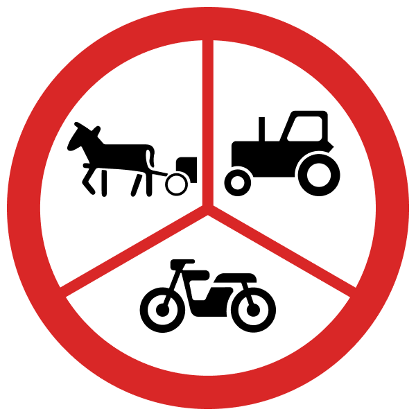 Важко уявити дорогу, де одночасна заборона саме цих видів транспорту має сенс. Чому можна на мотоциклі, але не можна на мопеді? Проте, на випадок коли буде дійсно необхідна комбінована заборона, є знаки
